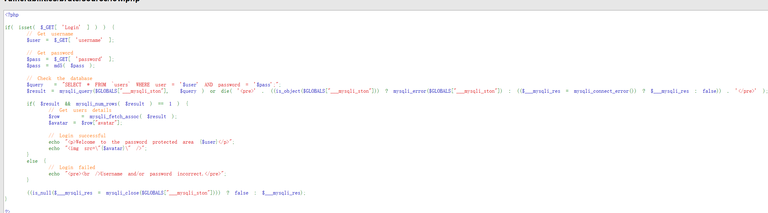 那么这关就无法进行注入了。而且我们在查看一下代码可以发现只要登陆失败就会激活sleep(2)函数导致爆破速度变慢,但是我们仍然可以进行爆破